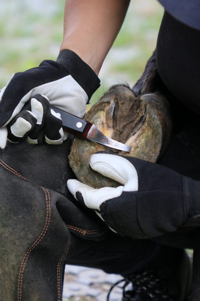 In der menschlichen Haltung jedoch besteht das Problem der zu wenigen Bewegung auf zu weichen Böden. Die Hufe nutzen sich zu wenig ab, weshalb sie durch das Ausschneiden künstlich gekürzt werden.